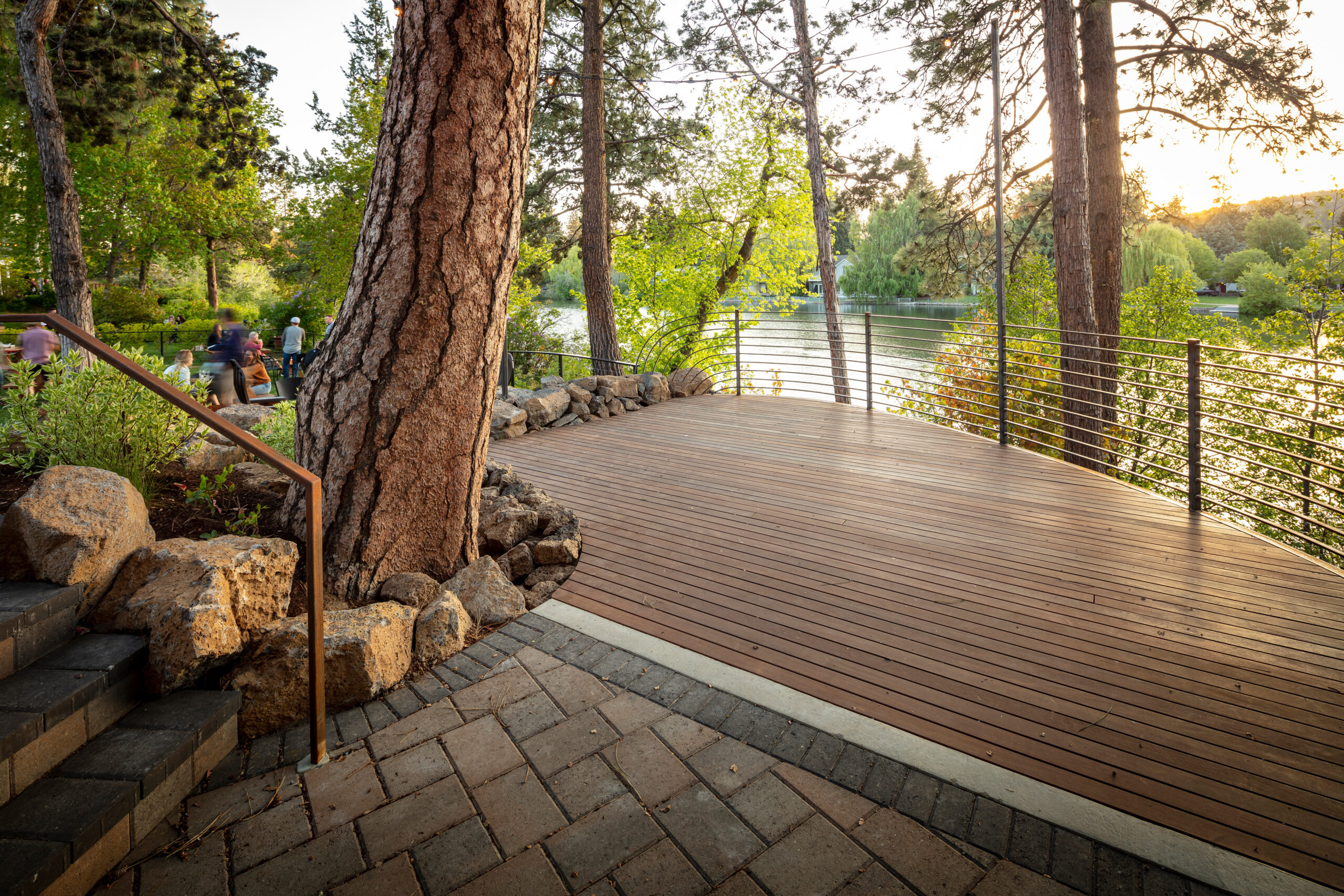 Located along the Deschutes River, this ground-up mixed-use development brings office, retail and restaurant space to downtown Bend. Two buildings, totaling 11,800 s.f., each bring their own unique flavor to the development. The 5,400 s.f. East building, which faces Brooks Street, has a traditional brick exterior designed to blend in with its more urban surroundings. The 6,400 s.f. West building, which overlooks a more natural landscape of trees and Mirror Pond, is clad in stone and recycled barn wood.
