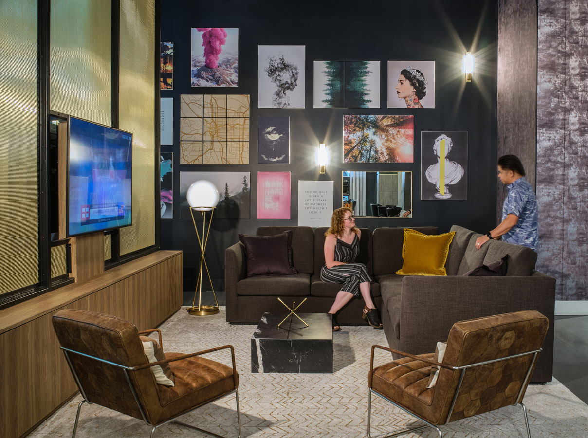 In lieu of becoming another ground-floor retail space in downtown Portland, when SteelWave LLC acquired the building they had different dreams for the space. SteelWave had their sights set on creating a lobby atmosphere that mimicked the feeling of a hotel lobby. The new lobby and amenities spaces on the ground floor offer tenants many more perks, seating areas, conference rooms, and social areas to lounge and relax.