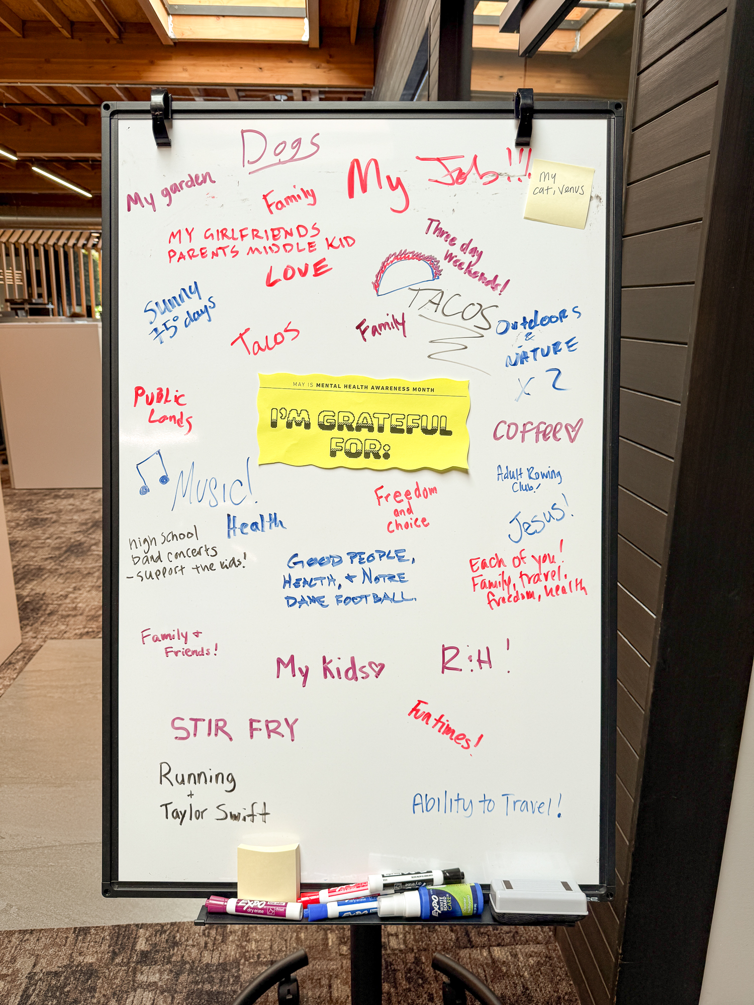 The colorful Mental Health Awareness Month Activity Books encouraged team members to complete a range of wellness activities in different categories from Acts of Kindness to Self-Care and Physical Movement for a chance to win a prize.