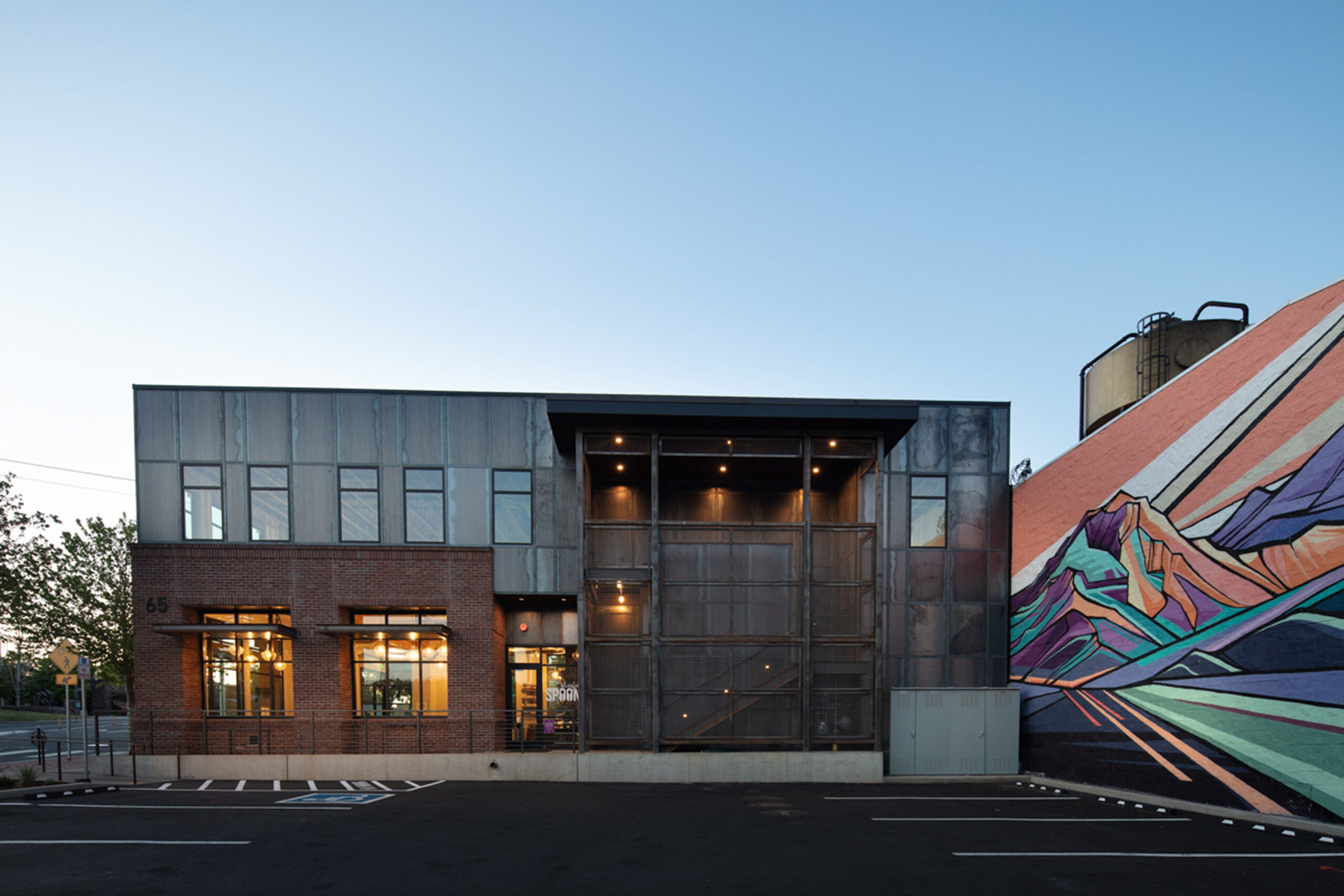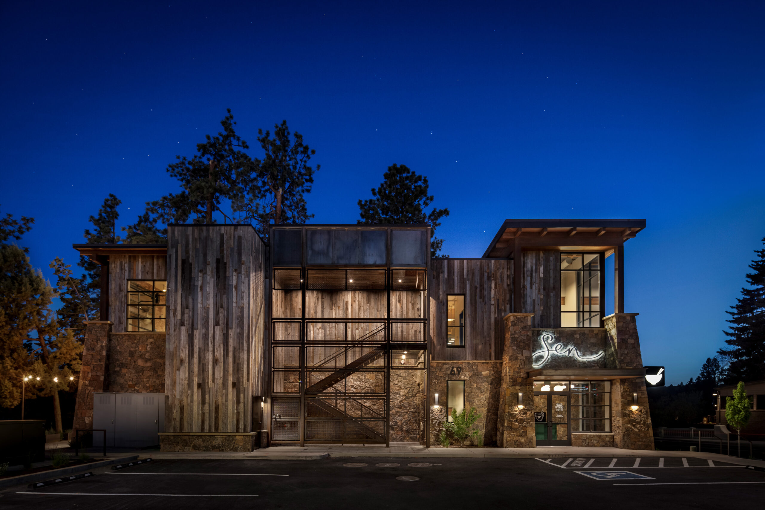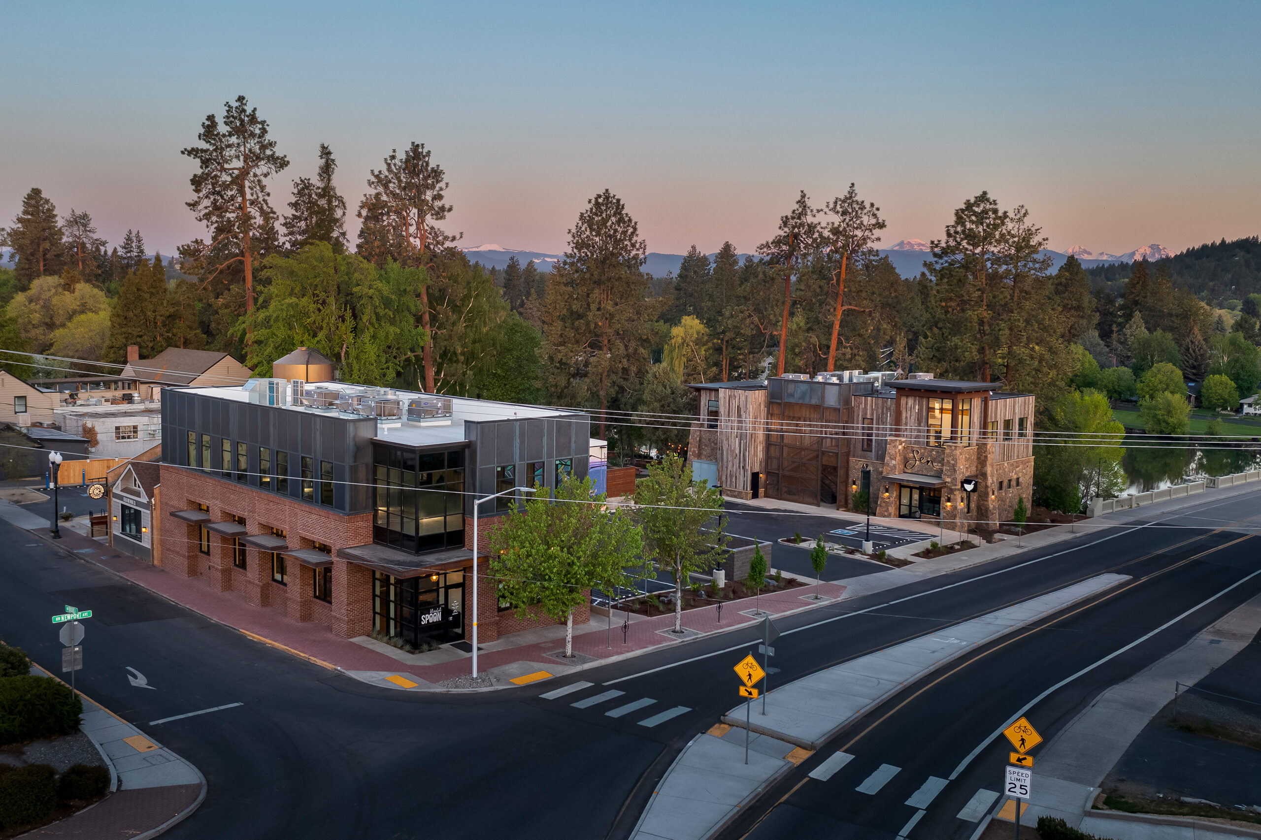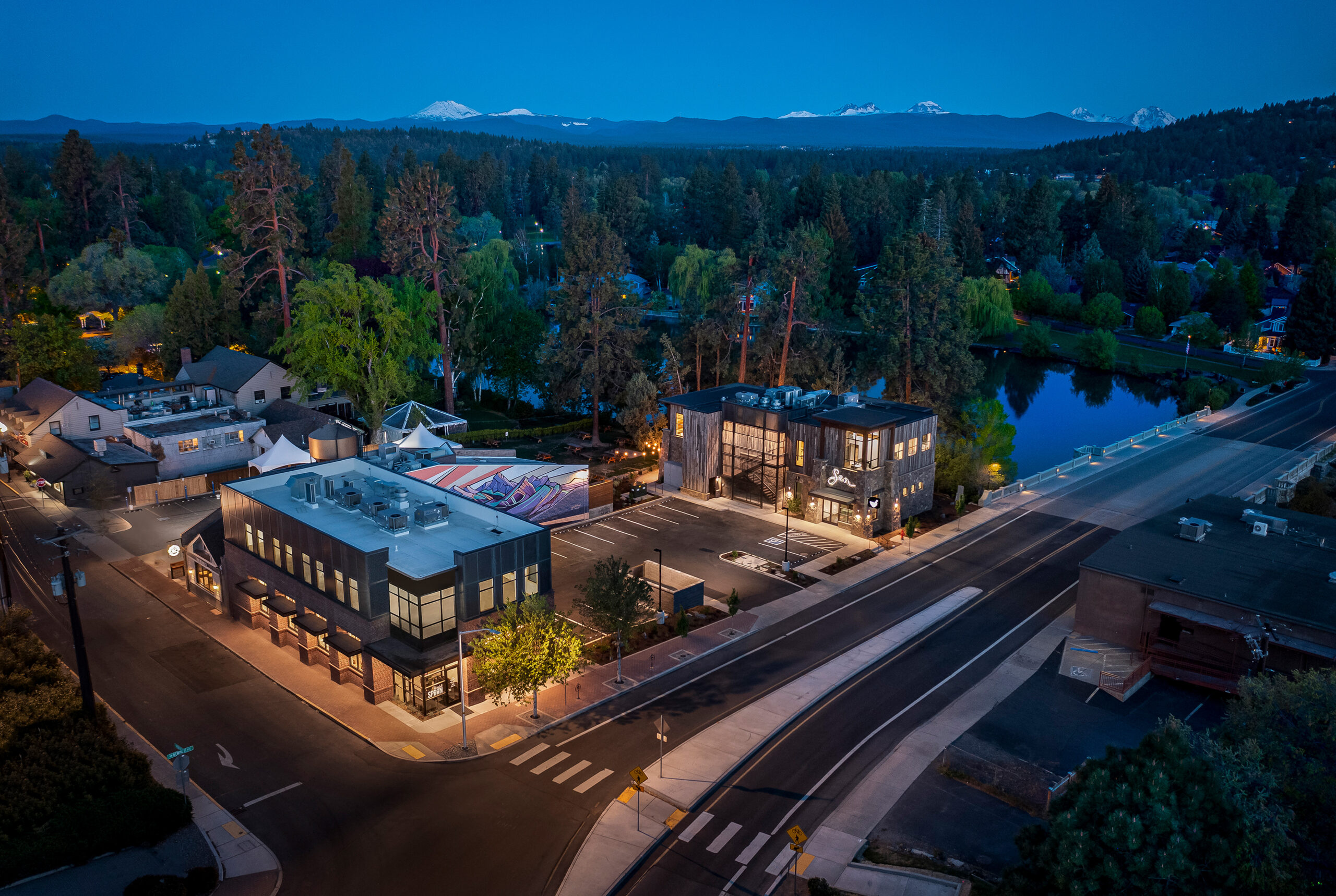 Located along the Deschutes River, this ground-up mixed-use development brings office, retail and restaurant space to downtown Bend. Two buildings, totaling 11,800 s.f., each bring their own unique flavor to the development. The 5,400 s.f. East building, which faces Brooks Street, has a traditional brick exterior designed to blend in with its more urban surroundings. The 6,400 s.f. West building, which overlooks a more natural landscape of trees and Mirror Pond, is clad in stone and recycled barn wood.